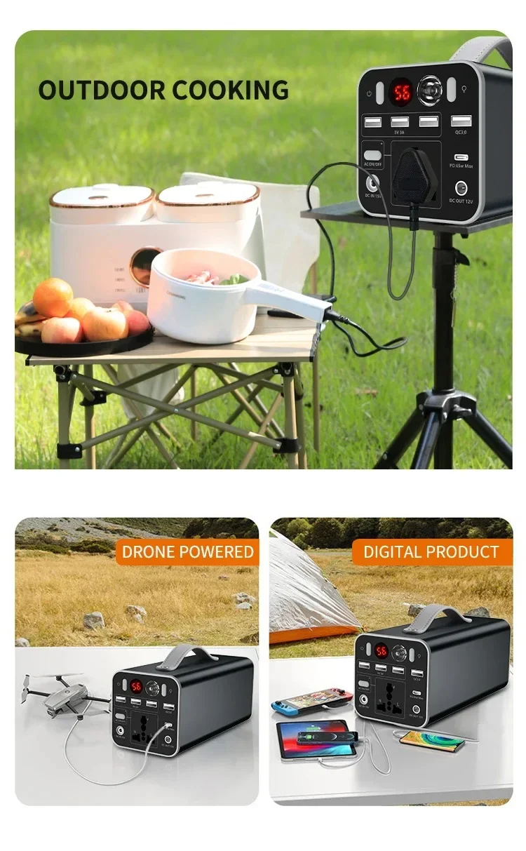 Note: This outdoor power supply can only provide power to electrical appliances with a working power lower than 180W. It cannot be used for electrical appliances with a working power higher than 180W.